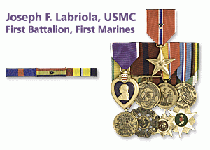| The uniform jacket of 20-year old Sergeant Labriola | Medals | Ribbons |