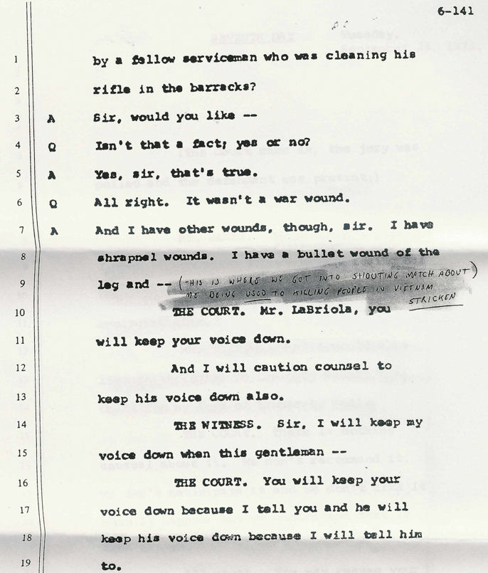I became a victim of a torpid period in American history in 1973, when as a Vietnam veteran who served honorably in that controversial conflict, I found myself in a court of law having my war record used against me to obtain a conviction in lieu of ANY direct evidence. A screaming tirade about my being "used to killing people" or "you killed lots of people in Vietnam," was stricken from the record, but one can see where in the transcript this happened and can see where the Assistant DA is apologizing to the court for his behavior.